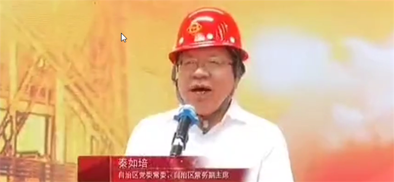 廣西壯族自治區(qū)黨委常委、常務(wù)副主席秦如培宣布項(xiàng)目(一期)全線投產(chǎn)